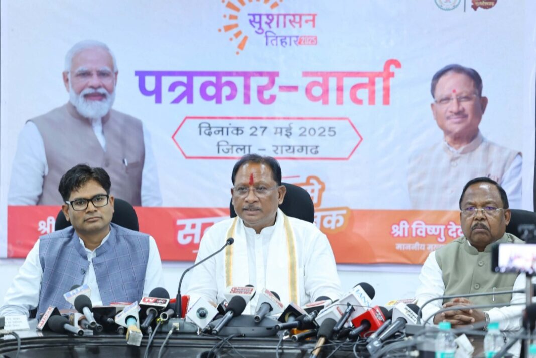 रायपुर, 27 मई 2025। मुख्यमंत्री विष्णु देव साय ने सुशासन तिहार के तहत आज रायगढ़ में आयोजित प्रेस कॉन्फ्रेंस में कहा कि स्कूली शिक्षा की गुणवत्ता सुधारने के लिए राज्य सरकार का युक्तियुक्तकरण का फैसला छात्रों के हित में है।