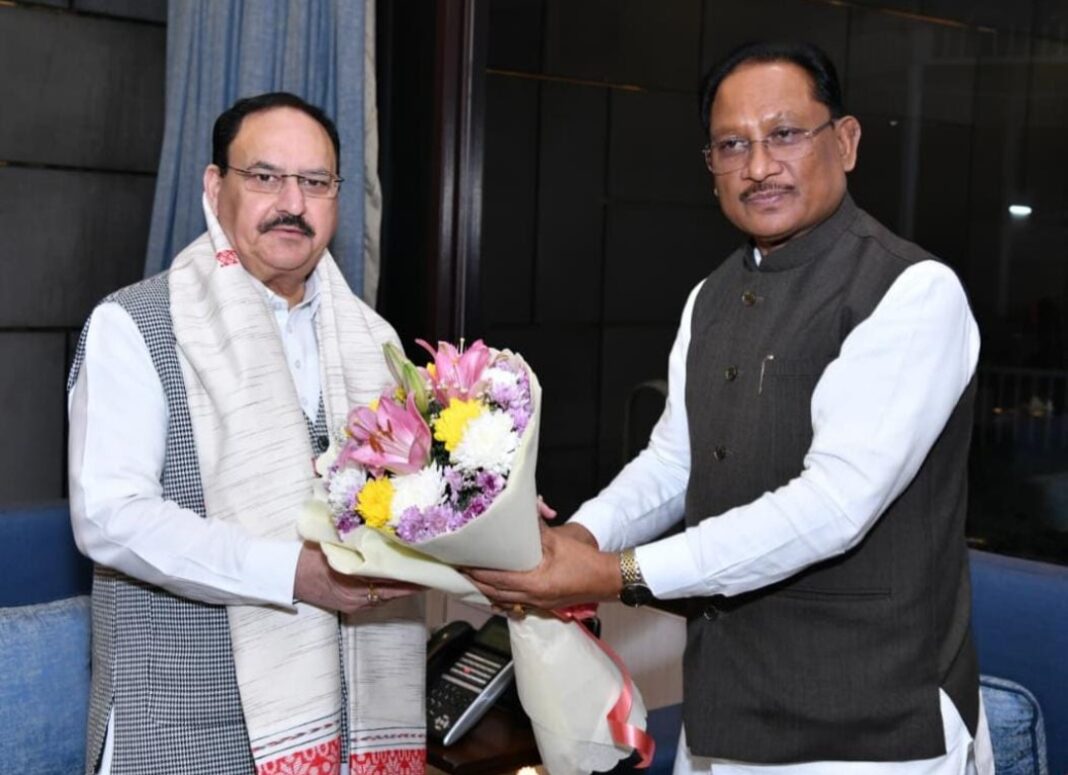 नई दिल्ली। छत्तीसगढ़ के मुख्यमंत्री विष्णुदेव साय ने नई दिल्ली में केंद्रीय स्वास्थ्य एवं परिवार कल्याण मंत्री जेपी नड्डा से उनके निवास पर सौजन्य भेंट की। मुलाकात में राज्य के स्वास्थ्य ढांचे को मजबूत करने और बेहतर चिकित्सा सुविधाओं के विस्तार पर सार्थक चर्चा हुई।