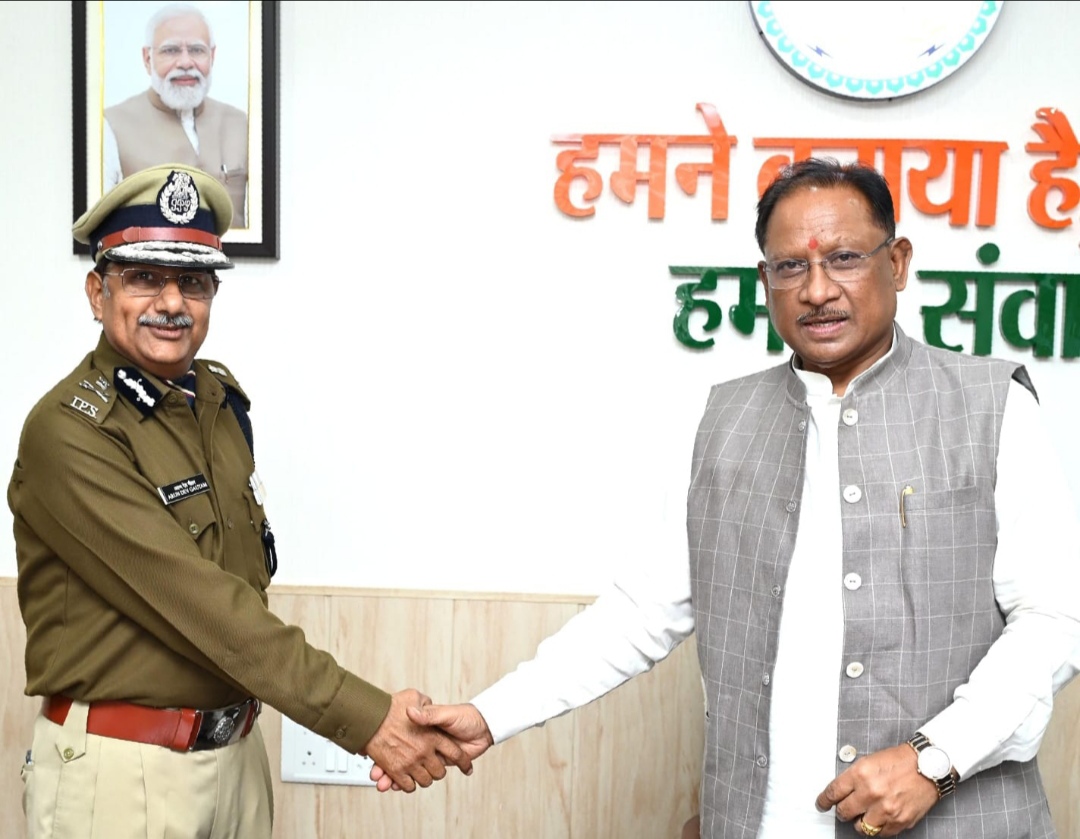 रायपुर 6 फरवरी 2025। मुख्यमंत्री विष्णुदेव साय से आज उनके निवास कार्यालय में नवनियुक्त पुलिस महानिदेशक श्री अरुण देव गौतम ने सौजन्य भेंट की। मुख्यमंत्री श्री विष्णुदेव साय ने श्री गौतम को नई जिम्मेदारी के लिए शुभकामनाएं देते हुए प्रदेश में कानून-व्यवस्था, अपराध नियंत्रण, नागरिक सुरक्षा और पुलिस प्रशासन को और अधिक प्रभावी बनाने हेतु आवश्यक दिशा-निर्देश प्रदान किए। उन्होंने आधुनिक तकनीकों के समुचित उपयोग, जनसहभागिता और अनुशासित पुलिसिंग के माध्यम से प्रदेश में कानून-व्यवस्था को सुदृढ़ किए जाने पर बल दिया।