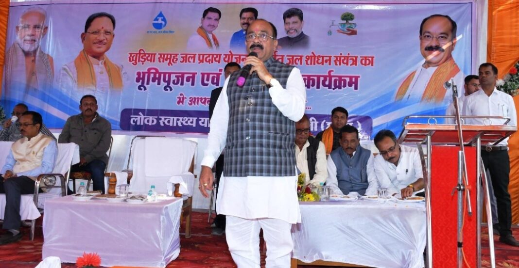 रायपुर. 7 दिसम्बर 2024. उप मुख्यमंत्री तथा लोक स्वास्थ्य यांत्रिकी मंत्री श्री अरुण साव ने आज मुंगेली जिले के लोरमी विकासखंड के खुड़िया में 290 करोड़ रुपए से अधिक की लागत के मल्टी-विलेज जल प्रदाय योजना के वाटर ट्रीटमेंट प्लांट का भूमिपूजन और शिलान्यास किया। जल जीवन मिशन के तहत खुड़िया मल्टी-विलेज योजना से मुंगेली जिले के तीनों विकासखंडों के 206 गांवों को स्वच्छ और सुरक्षित पेयजल की आपूर्ति की जाएगी। जिले के करीब 60 हजार परिवारों को योजना का फायदा मिलेगा। खुड़िया जलाशय के सामने ही 23 एमएलडी क्षमता का वाटर ट्रीटमेंट प्लांट बनाया जा रहा है। योजना का काम एक वर्ष में पूर्ण करने का लक्ष्य रखा गया है।