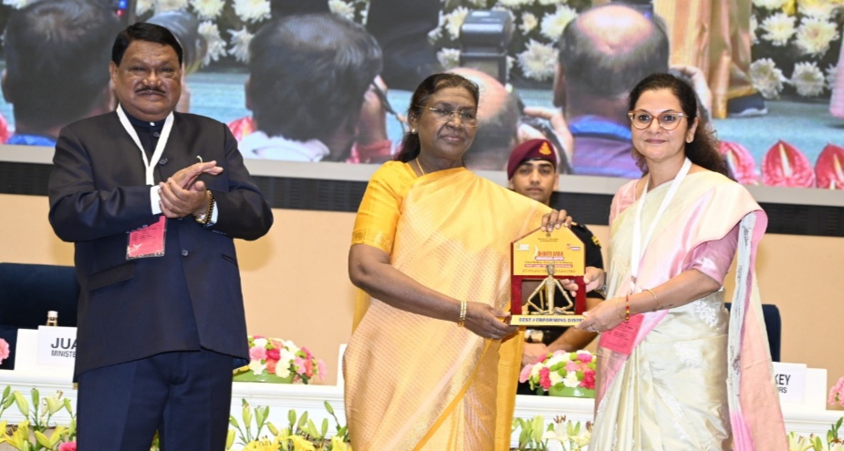 रायपुर, 19 अक्टूबर 2025। देश की राजधानी नई दिल्ली के विज्ञान भवन में आयोजित ‘राष्ट्रीय कॉन्क्लेव ऑन आदि कर्मयोगी अभियान’ में छत्तीगसढ के कोरिया जिले ने एक बार फिर अपनी विकास यात्रा से राष्ट्रीय स्तर पर पहचान बनाई है। भारत सरकार के जनजातीय कार्य मंत्रालय द्वारा आयोजित इस भव्य समारोह में राष्ट्रपति श्रीमती द्रौपदी मुर्मू ने धरती आबा जनजाति ग्राम उत्कर्ष अभियान में उत्कृष्ट कार्यों के लिए कोरिया जिले की कलेक्टर श्रीमती चंदन त्रिपाठी को सम्मानित किया। इस अवसर पर केंद्रीय जनजातीय कार्य मंत्री श्री जुएल ओराम एवं राज्यमंत्री श्री दुर्गा दास उइके भी उपस्थित रहे। कार्यक्रम में छत्तीसगढ़ शासन के प्रमुख सचिव श्री सोनमणि बोरा को भी राज्य स्तर पर उत्कृष्ट प्रदर्शन के लिए राष्ट्रपति के हाथों सम्मान प्राप्त हुआ।