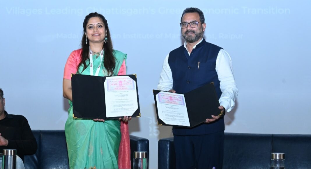 कार्यक्रम के दौरान वन विभाग और ट्रांसफॉर्म रूरल इंडिया संस्था के बीच हरित बदलाव के सहयोग हेतु एक सहमति पत्र (MoU) पर हस्ताक्षर किए गए। इस अवसर पर प्रबंधन संस्थान, रायपुर द्वारा प्रदेश के हरित विकास हेतु पाँच प्रमुख स्तंभ प्रस्तुत किए गए, जिनमें परंपरागत खेती और वन संसाधनों का संरक्षण, हरित रोजगार एवं पर्यावरणीय पर्यटन, स्थानीय उत्पादन को बढ़ावा, सौर ऊर्जा आधारित ग्राम-विद्युत प्रबंधन में जनभागीदारी, नीति एवं संस्थागत ढाँचे का निर्माण शामिल है।