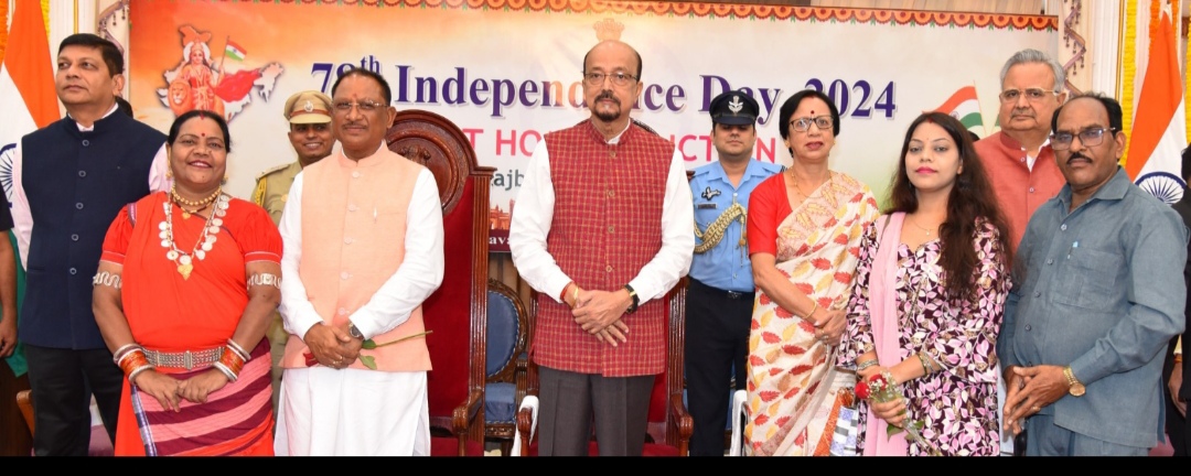 रायपुर, 16 अगस्त 2024/स्वतंत्रता दिवस के अवसर पर  यहां राजभवन में स्वागत समारोह का आयोजन किया गया, जिसमें प्रदेश के विभिन्न क्षेत्रों की हस्तियां शामिल हुईं। राज्यपाल श्री रमेन डेका ने सभी को स्वतंत्रता दिवस की शुभकामनाएं दी। राज्यपाल श्री डेका को मुख्यमंत्री श्री विष्णु देव साय ने पुष्पगुच्छ भेंट कर स्वतंत्रता दिवस की हार्दिक बधाई और शुभकामनाएं दी। इस अवसर पर प्रथम महिला श्रीमती रानी डेका काकोटी उपस्थित थीं।