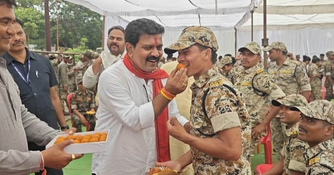मुख्यमंत्री की भेजी मिठाई लेकर जवानों के बीच पहुंचे उपमुख्यमंत्री विजय शर्मा,,,, जवानों की पीठ थप-थपाकर हौसला अफजाई की