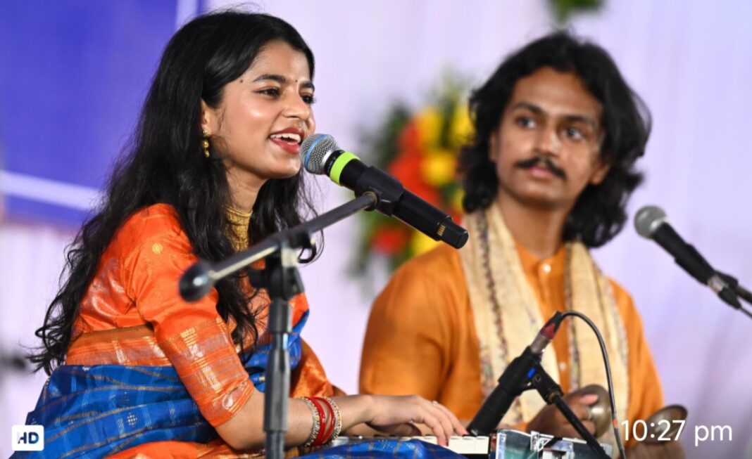 अपने गायन के दौरान उन्होंने “श्रीराम को देखकर जगत जननी नंदनी…”, “मेरे झोपड़ी के भाग खुल जाएंगे…”, “मेरे राम की कृपा से सब काम हो रहा है…” जैसे भजनों को मधुर और मनमोहक स्वर में प्रस्तुत किया, जिसे सुनकर उपस्थित जनसमूह भक्ति में लीन हो गया।विधानसभा अध्यक्ष डॉ. रमन सिंह एवं मुख्यमंत्री श्री विष्णु देव साय ने मुख्य मंच से लोक गायिका सुश्री मैथिली ठाकुर को शाल, श्रीफल एवं स्मृति चिन्ह भेंट कर सम्मानित किया।
