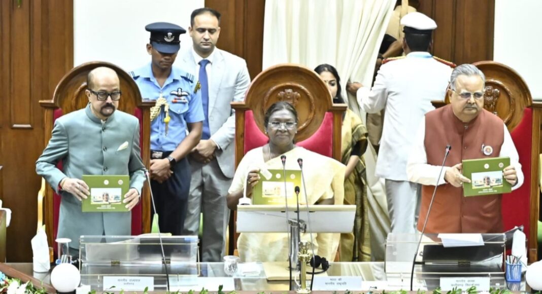 विधान सभा अध्यक्ष डॉ. रमन सिंह ने राष्ट्रपति श्रीमती द्रौपदी मुर्मु का स्वागत करते हुए कहा कि छत्तीसगढ़ विधानसभा को यह गौरव प्राप्त है कि तीसरी बार भारत के राष्ट्रपति ने सदन को संबोधित किया है। इससे पहले स्वर्गीय डॉ. एपीजे अब्दुल कलाम और श्रीमती प्रतिभा देवी सिंह पाटिल विधानसभा को संबोधित कर चुके हैं। उन्होंने राष्ट्रपति मुर्मु जी के सरल, संघर्षशील और प्रेरणादायक जीवन को देश की महिलाओं, जनप्रतिनिधियों और युवाओं के लिए प्रेरणा स्रोत बताया। उन्होंने छत्तीसगढ़ विधान सभा की 25 वर्ष की यात्रा को लोकतांत्रिक मूल्यों की सुदृढ़ता की यात्रा बताया। उन्होंने कहा कि सदन में ‘स्वअनुशासन’ की परंपरा स्थापित की गई, जहां सदस्यों ने स्वयं बनाए नियमों का पालन कर पूरे देश के लिए उदाहरण प्रस्तुत किया।