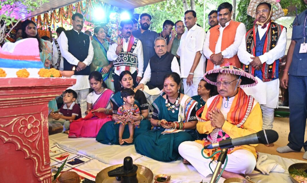 मुख्यमंत्री श्री विष्णुदेव साय ने धर्मपत्नी श्रीमती कौशल्या साय एवं परिजनों के साथ विधिवत रूप से तुलसी माता, नांगर, कृषि उपकरणों, गेड़ी की पूजा कर अच्छी फसल, किसानों और प्रदेशवासियों की सुख समृद्धि और खुशहाली की कामना की।