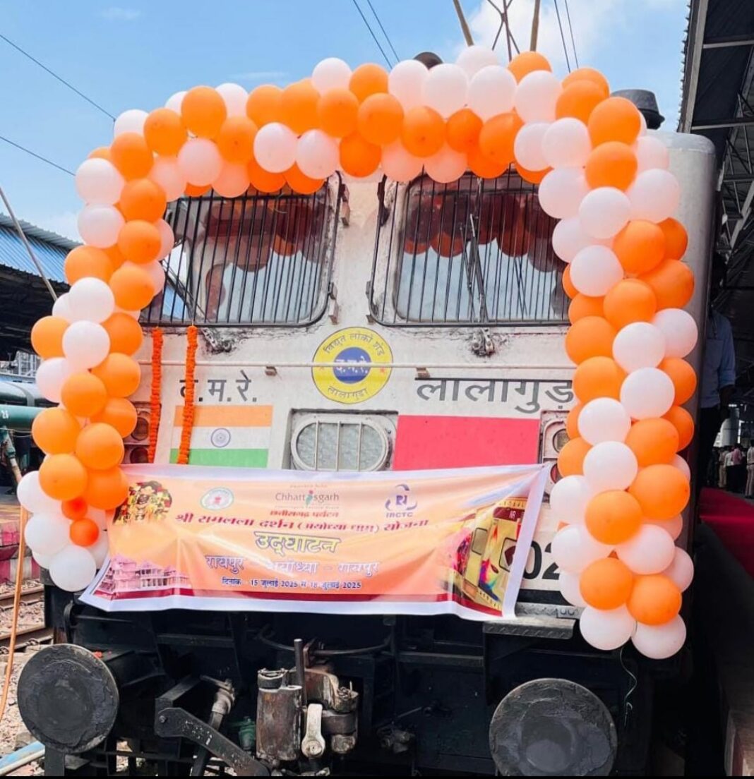 रायपुर, 15 जुलाई 2025। छत्तीसगढ़ सरकार द्वारा प्रदेशवासियों की आस्था और श्रद्धा को मूर्त रूप देने हेतु प्रारंभ की गई ‘श्री रामलला दर्शन योजना’ के अंतर्गत आज रायपुर रेलवे स्टेशन से रायपुर संभाग के 850 श्रद्धालु विशेष ट्रेन से अयोध्या धाम के दर्शन के लिए रवाना हुए। इस पवित्र यात्रा के शुभारंभ पर मुख्यमंत्री श्री विष्णु देव साय ने श्रद्धालुओं को हार्दिक शुभकामनाएं दीं और उनकी यात्रा के मंगलमयी होने की कामना की।