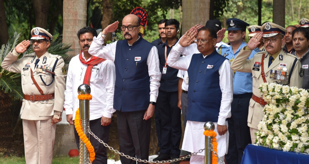 रायपुर, 21 अक्टूबर 2025। राज्यपाल रमेन डेका और मुख्यमंत्री विष्णु देव साय आज पुलिस स्मृति दिवस के अवसर पर राजधानी रायपुर स्थित शहीद वाटिका पहुंचे। उन्होंने अमर जवान स्तंभ पर पुष्पांजलि अर्पित कर शहीद वीर जवानों को नमन किया। उन्होंने शहीदों के सर्वोच्च बलिदान को स्मरण करते हुए उनके परिजनों के प्रति सम्मान और कृतज्ञता व्यक्त की।